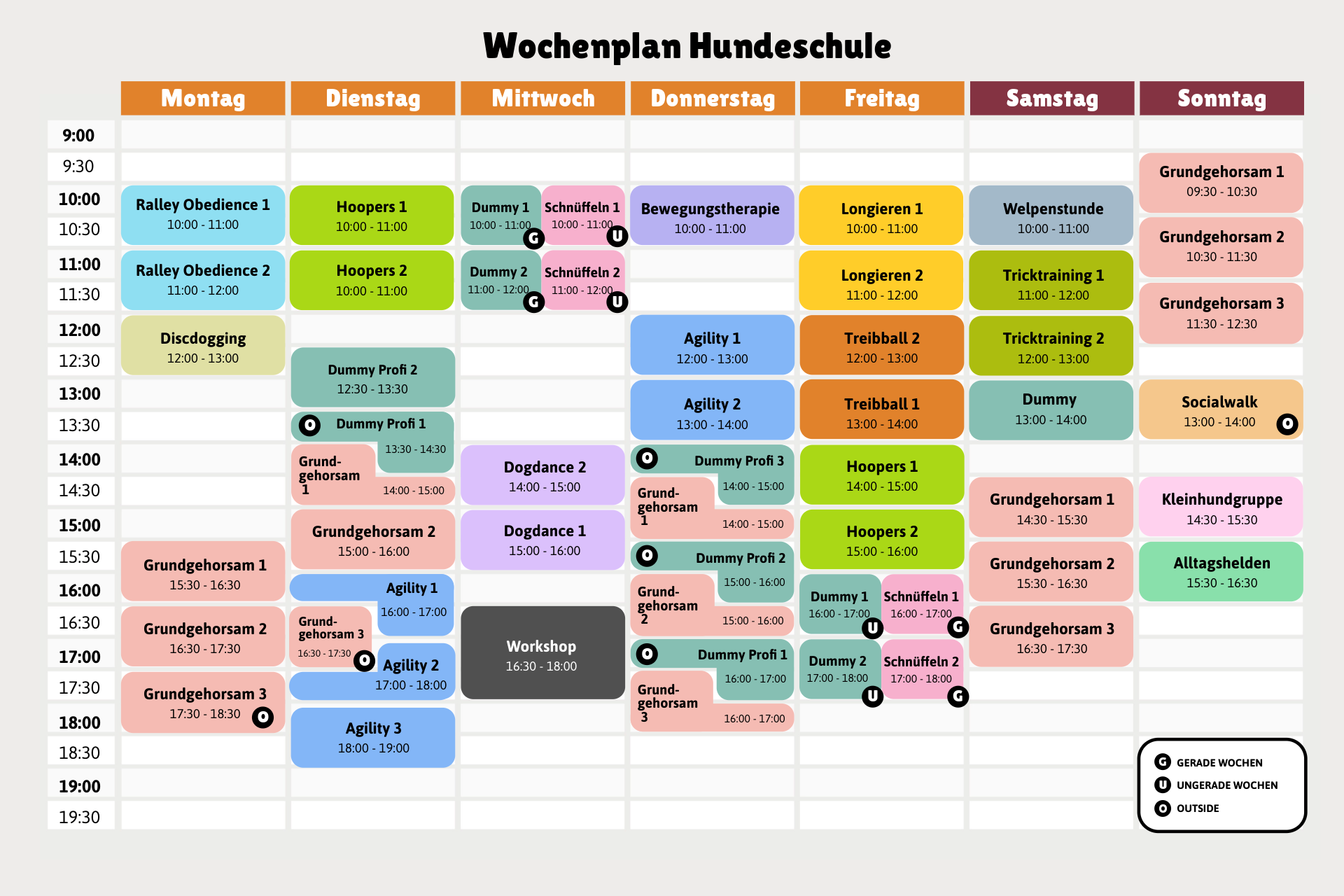 In unserem umfangreichen Kursangebot ist für jedes Hund-Mensch-Team das Richtige dabei. Vom Grundgehorsam über Hoopers, Dummy und vielen mehr findest Du ganz sicher das nächste Lieblingshobby für Dich und Deinen Hund.