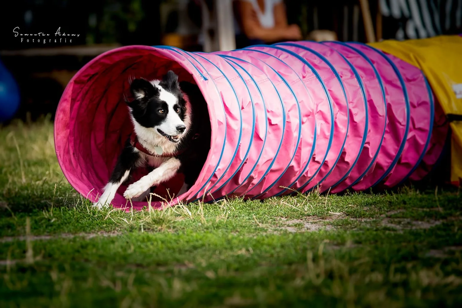 Meine Trainingsschwerpunkte sind Grundgehorsam und Agility auf dem Platz. Dazu kommt in der kühlen Saison der Zughundesport.